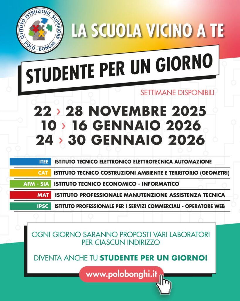 I ragazzi che sono alle prese con la scelta della scuola superiore, insieme ai loro genitori, potranno conoscere la scuola nelle giornate degli Open Day presso le due sedi del nostro Istituto (non occorre prenotare).